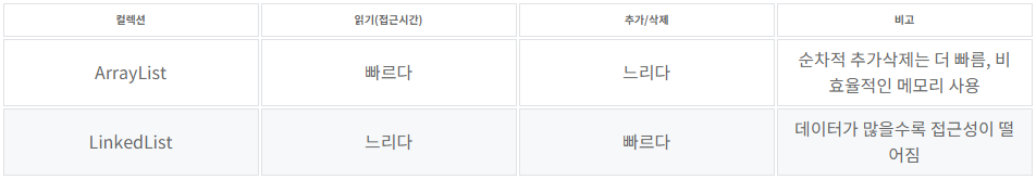 ArrayList는 기존의 Vector를 개선한 것으로, 가능하면 Vector보다 ArrayList를 사용하자.