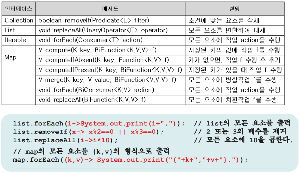 함수형 인터페이스에는 오직 하나의 추상메서드만 정의되어 있어야 한다는 제약이 있다. 그래야 람다식과 인터페이스의 메서드가 1:1로 연결될 수 있기 때문이다.