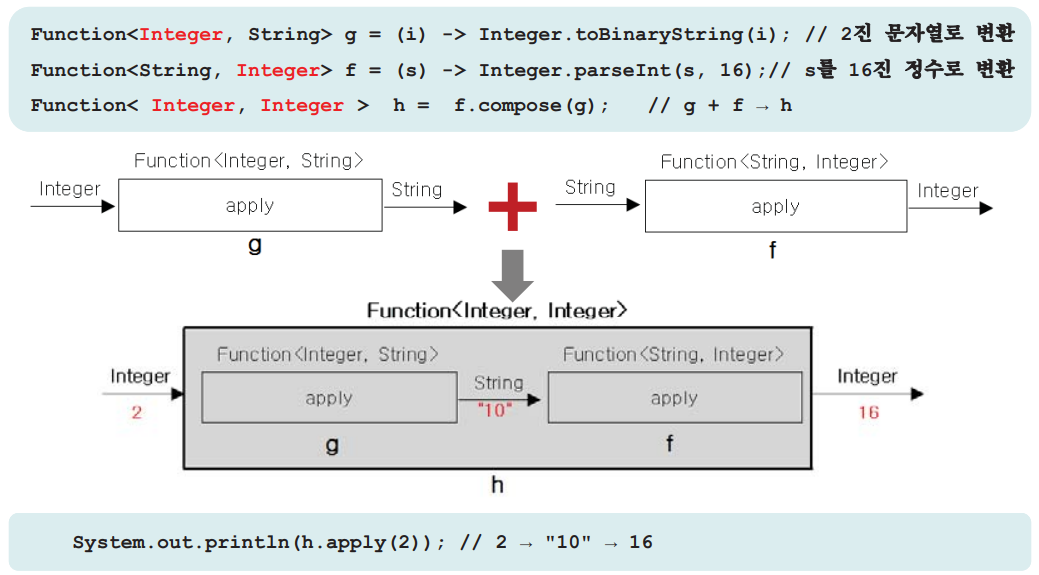 andThen()과 다른 점은 andThen()은 f+g이고, compose()는 g+f로 실행 순서만 다르다.