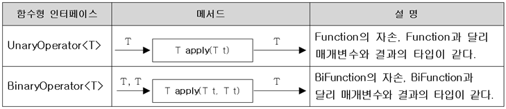 매개변수의 타입과 반환타입이 일치하는 함수형 인터페이스