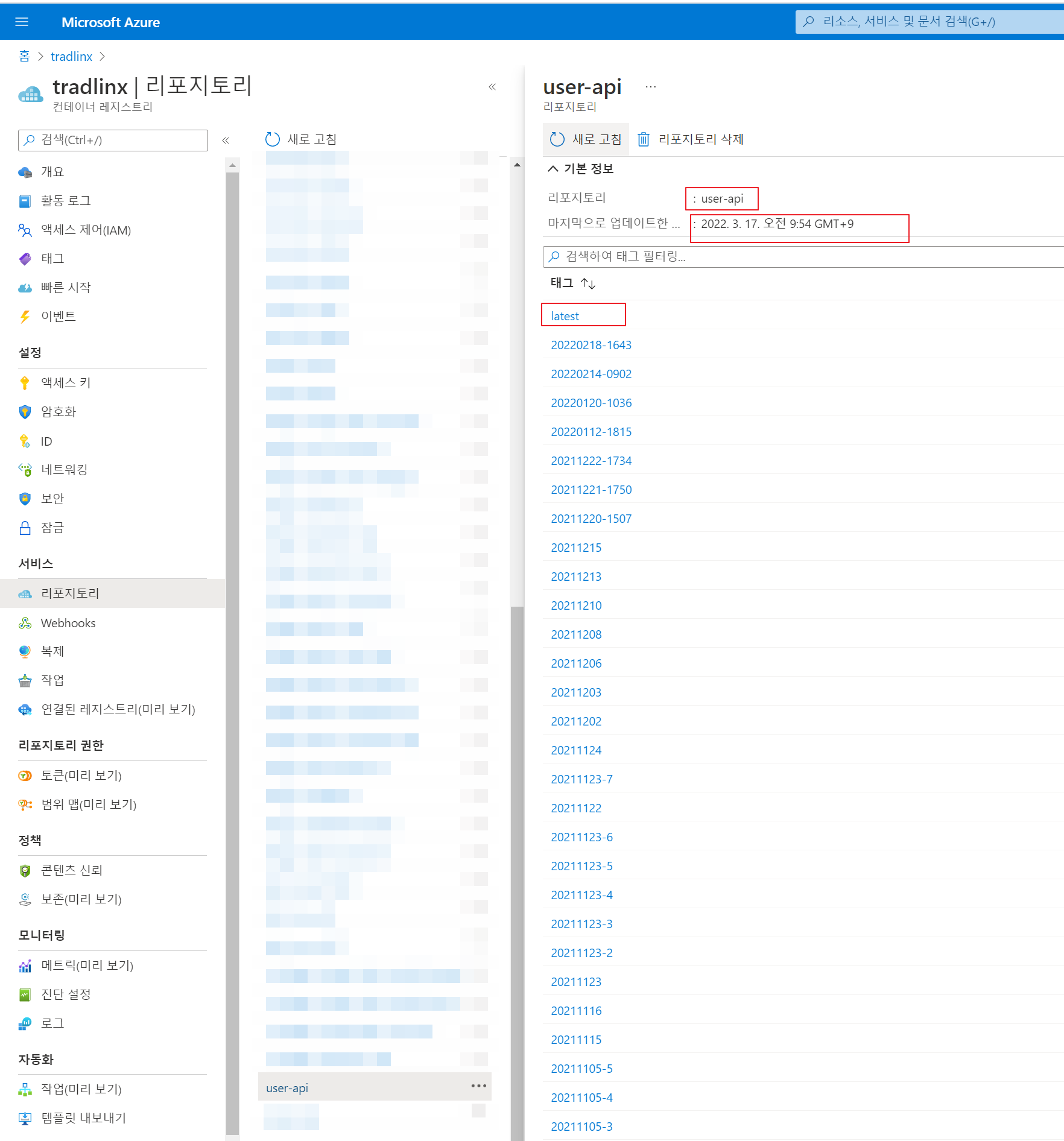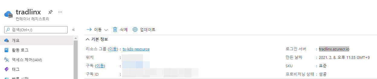 참고로, tradlinx.azurecr.io는 컨테이너 레지스트리의 로그인 서버이다.