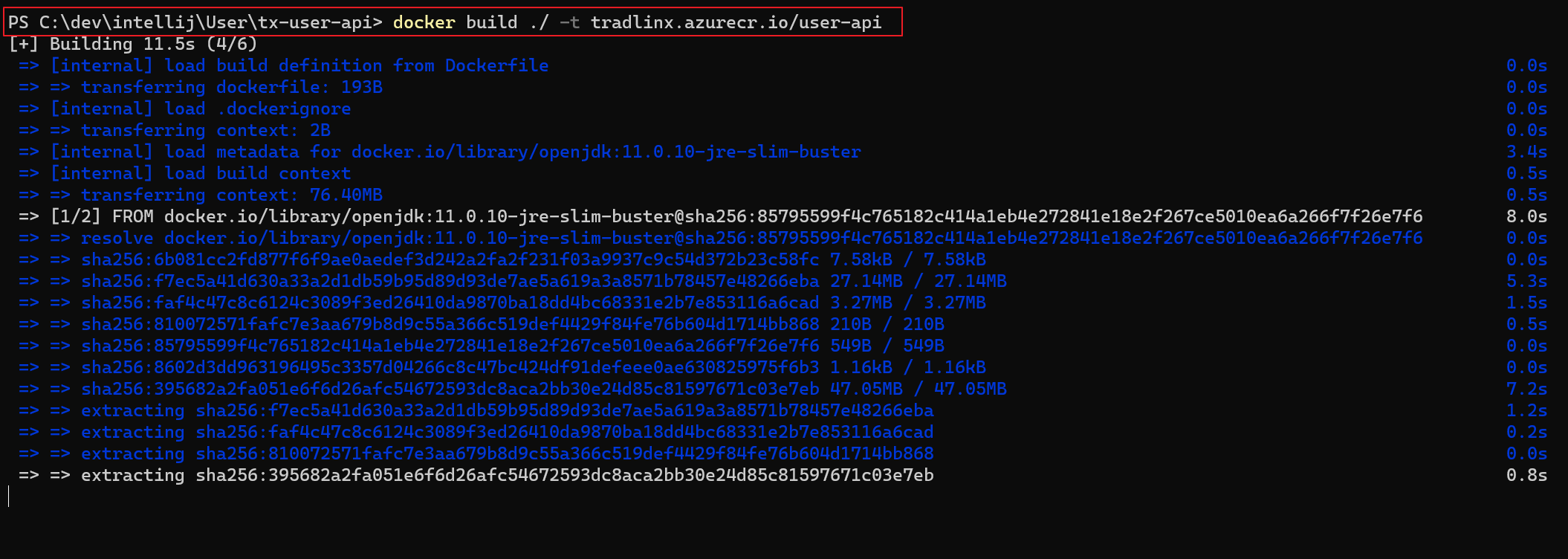 ex) docker build ./ -t tradlinx.azurecr.io/user-api