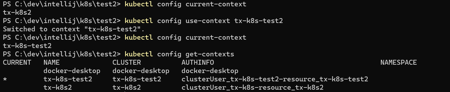 ex) kubectl config use-context tx-k8s-test2