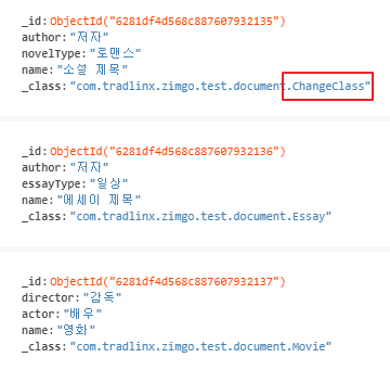 그래서 MongoDB에서 _class를 자식 클래스와 다르게 변경해보았다.