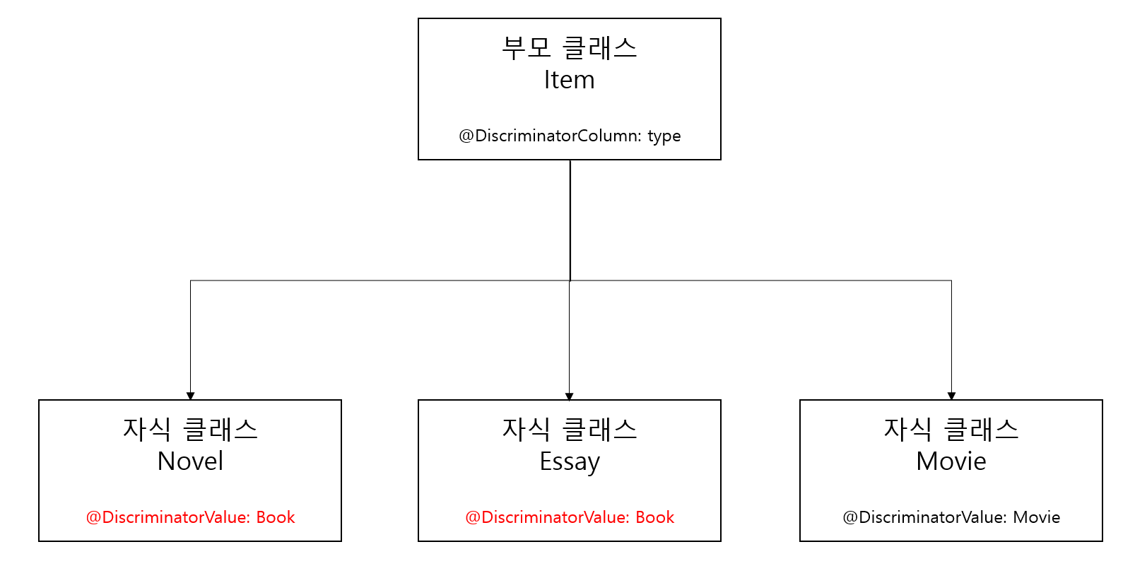 - _class로 구분하기 때문에, 자식 클래스의 클래스명은 변경하면 안된다. 변경 시, 기존 저장된 데이터를 매핑해서 가지고오지 못한다.