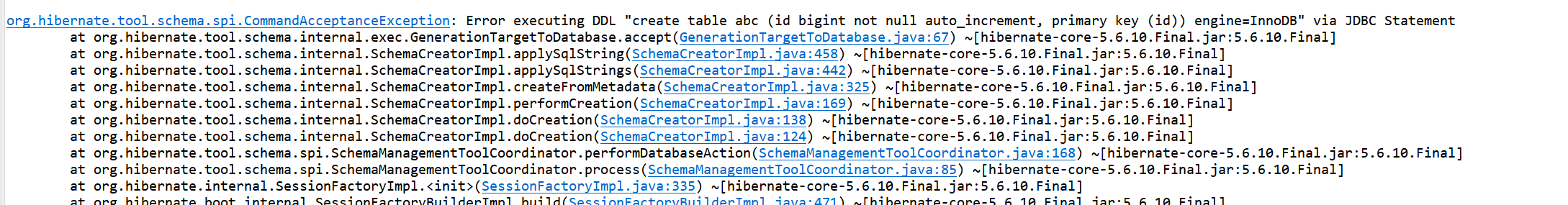 그런데, 부팅하려고 하니 DDL관련 아래와 같은 에러가 발생하였다.