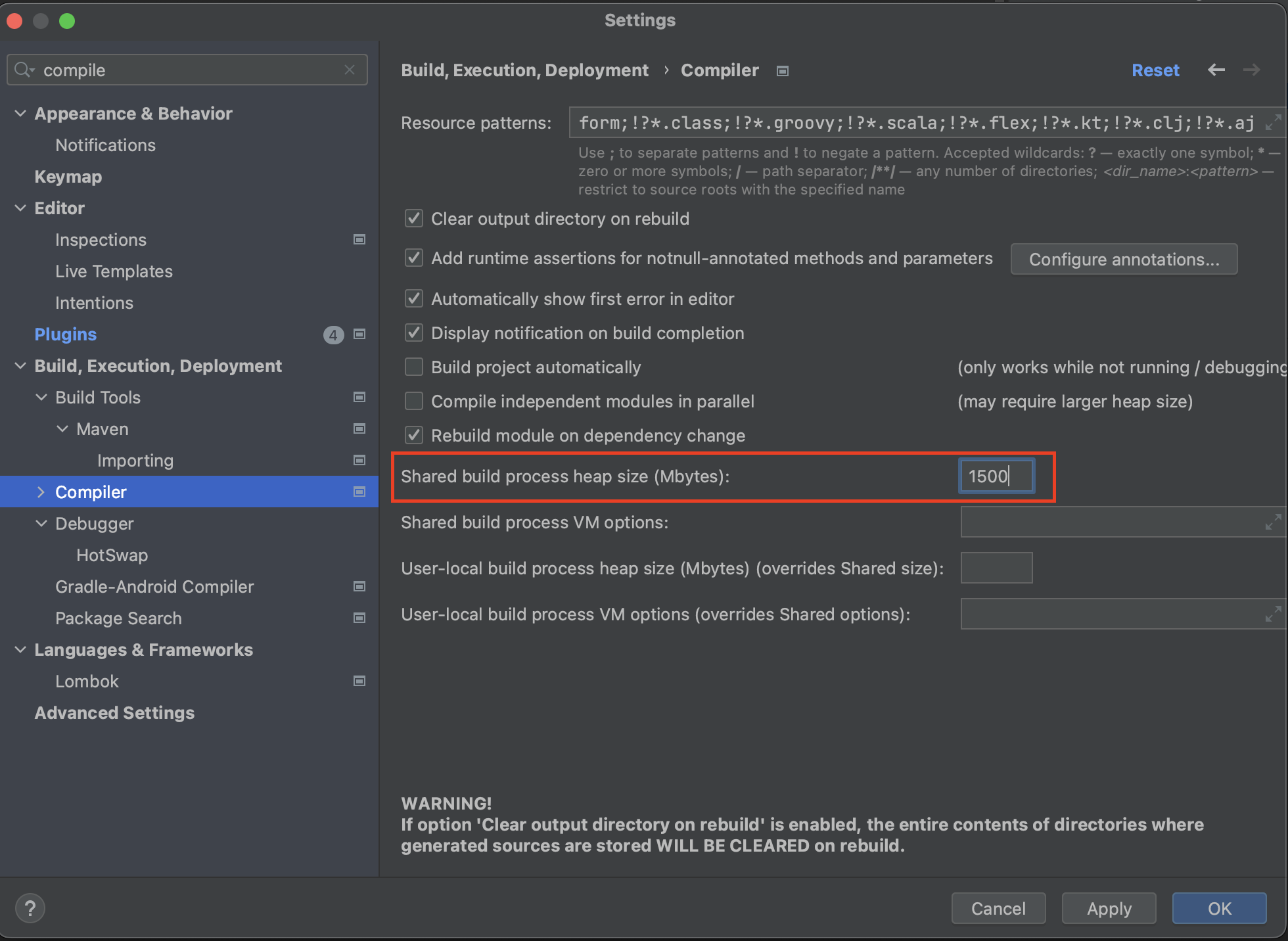 IntelliJ에서 프로젝트 빌드하는 데 아래와 같이 Java Heap Space가 부족해 OutOfMemory 에러가 났다.
