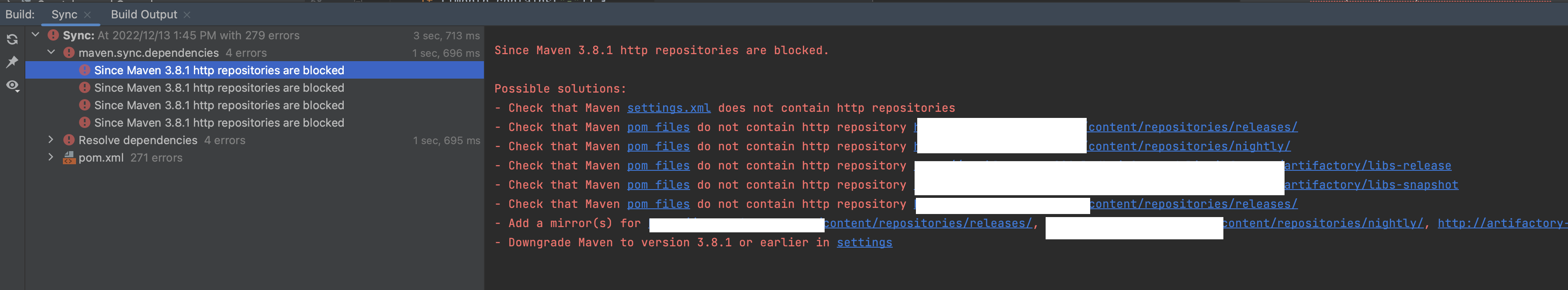 기존에는 잘 불러오던 라이브러리 못 불러오는 이슈 발생maven에서 자꾸 blocked the mirror 뜸.vpn 문제인가 해결해보려 시도했지만 아니었음. 바로 maven 3.8.1 에서 신규 추가된 기능 때문이었음Maven now