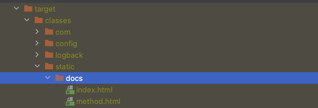 즉, static/docs/index.html로 url을 호출하면 target/classes/static/docs/index.html 파일을 반환하게 된다.