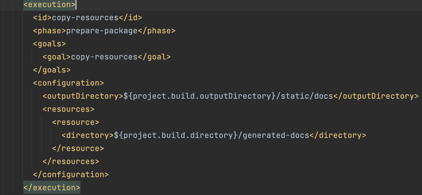 plugin 중 restdoc의 문서가 생성되는 /generated-docs에서 /static/docs로 복사해주는 execution을 발견하였다.