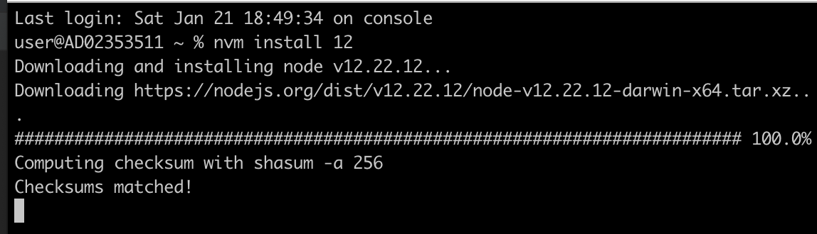 nvm으로 node 12버전을 설치했다. nvm으로 여러 버전의 node를 설치해 사용하는 방법은 아래 글 참조하면 된다.