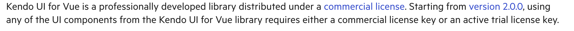 라이센스 문제인 거 같아, kendo vue 라이센스 관련해서 해당 홈페이지에서 확인해보았다.