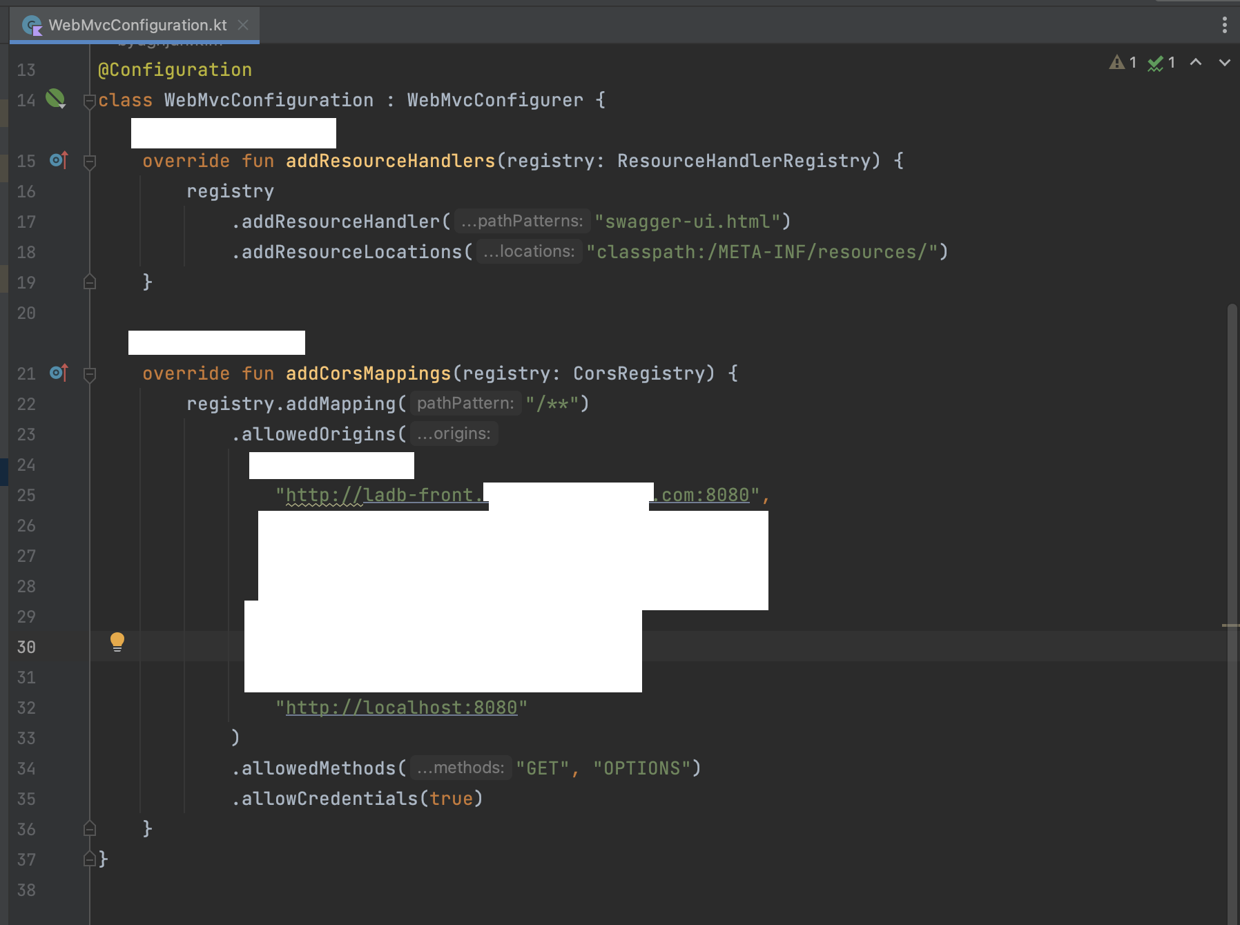 우선, Spring Project에 아래와 같이 CORS 설정을 추가해줬다.