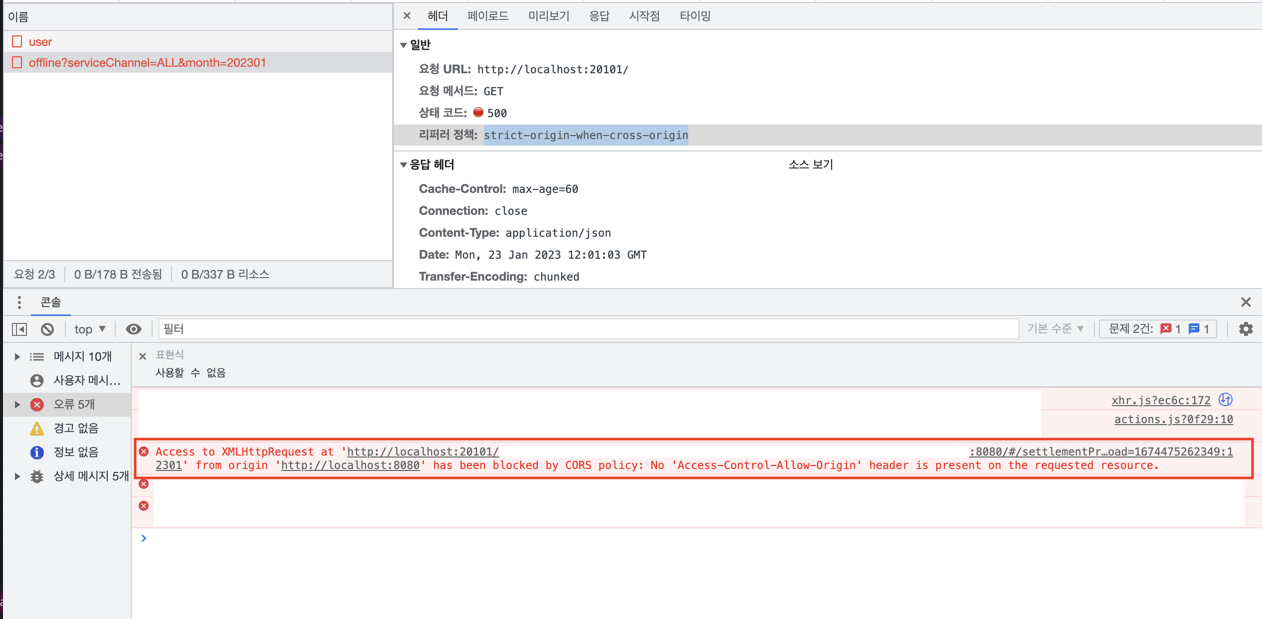 API를 호출할 때 아래와 같은 CORS 문제가 났다.
