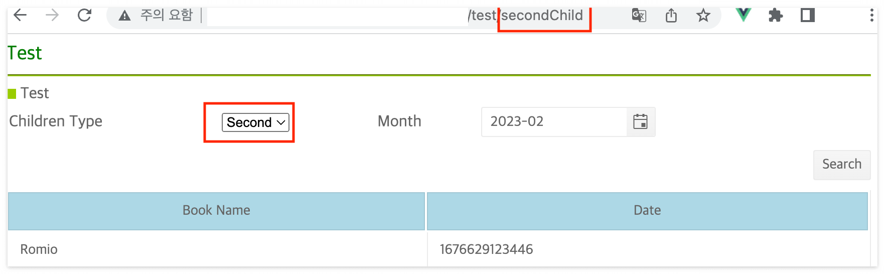 Children Type이 First이면 테이블 자리에 ChildrenFirst.vue가 오고, Second이면 ChidlrenSecond.vue가 온다.