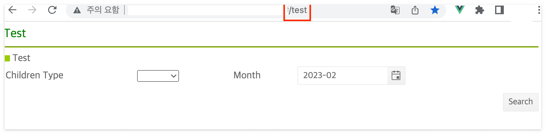참고로, /test 만 입력할 경우에는 매핑되는 path URL이 없으므로, 테이블 영역은 아무것도 나오지 않는다.
