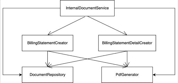 InternalDocumentService는 BillingStatementCreator, BillingStatementDetailCreator, DocumentRepository, PdfGenerator가 필요했다.