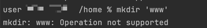 프로젝트 터미널에서 home에 직접 www 폴더를 생성하려고 해도 루트 권한이 없기 떄문에 Operation not supported 에러가 난다.