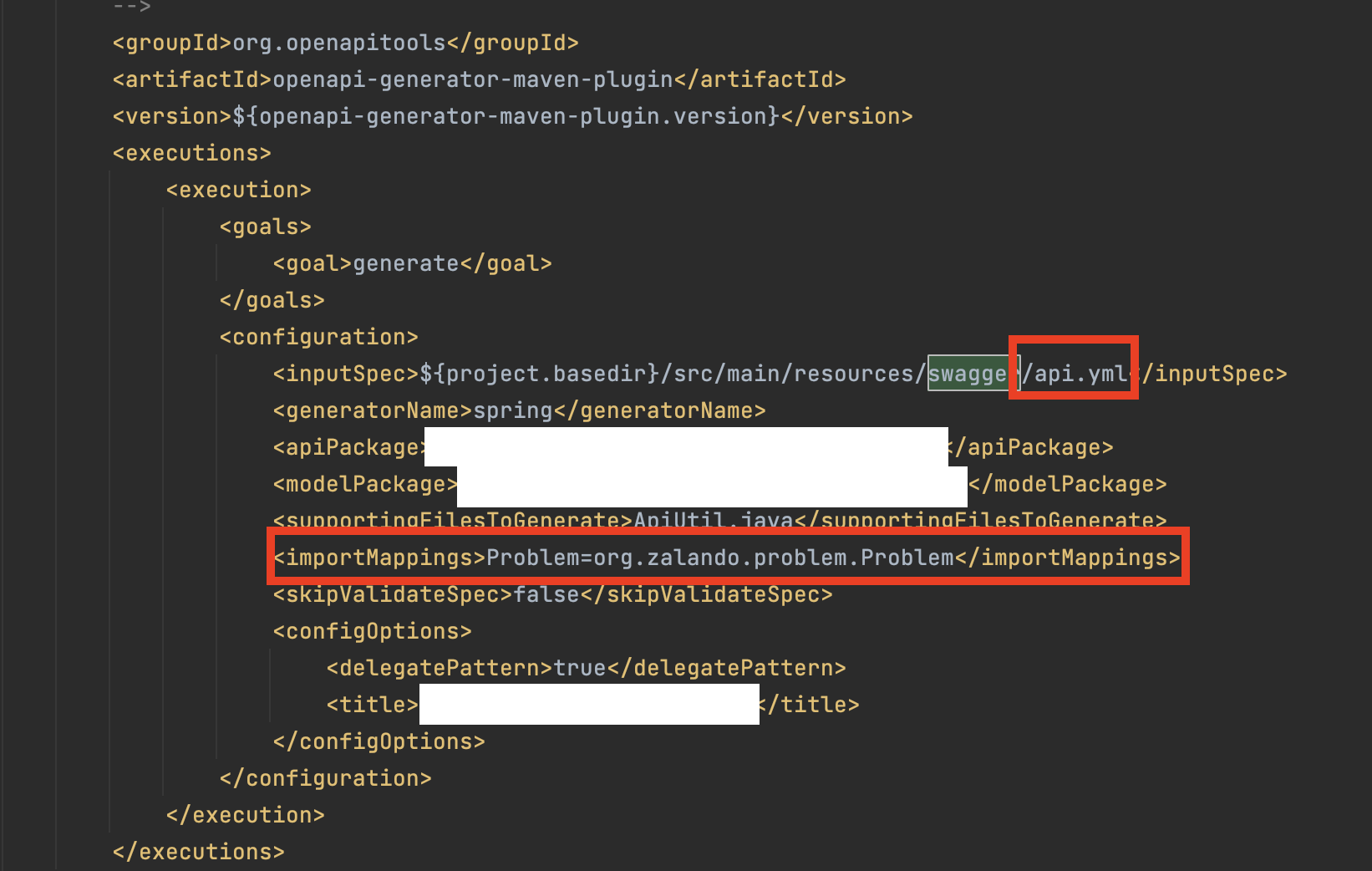 inputSpec은 입력으로 사용할 OpenAPI 스펙 파일의 경로를 지정한다. api.yml 파일이 스펙 파일 경로인 것을 확인할 수 있다.