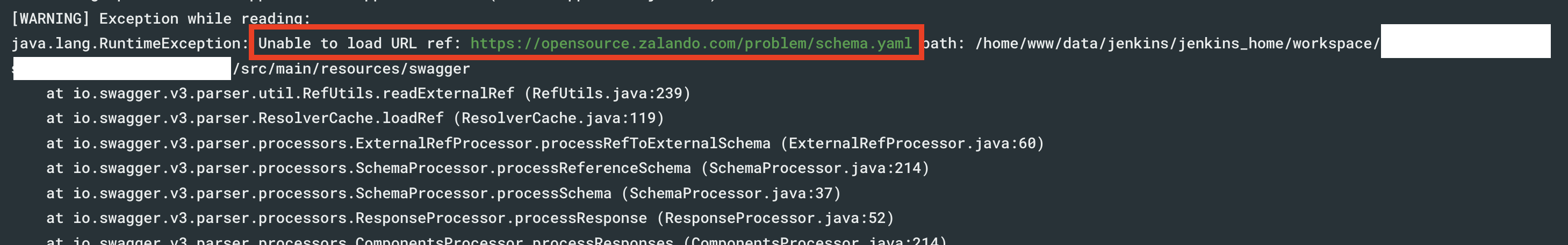 확인을 해보니, Connection timed out과 https://opensource.zalando.com/problem/schema.yaml 을 load할 수 없다는 에러였다.