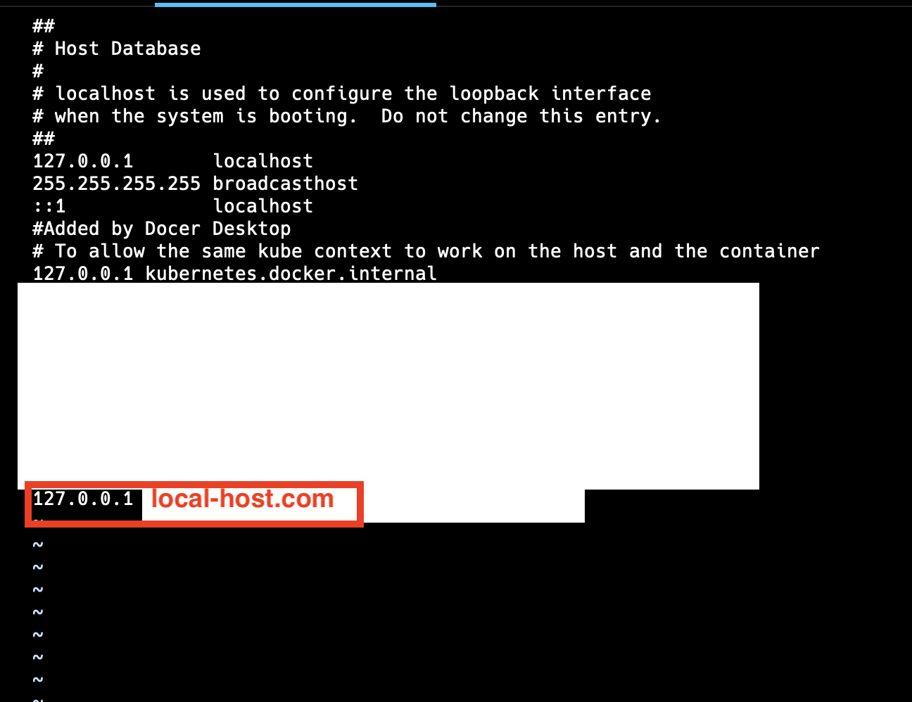 Mac에서는 터미널에 아래 명령어를 입력하여 hosts에 local-host.com을 추가해주면 된다.
