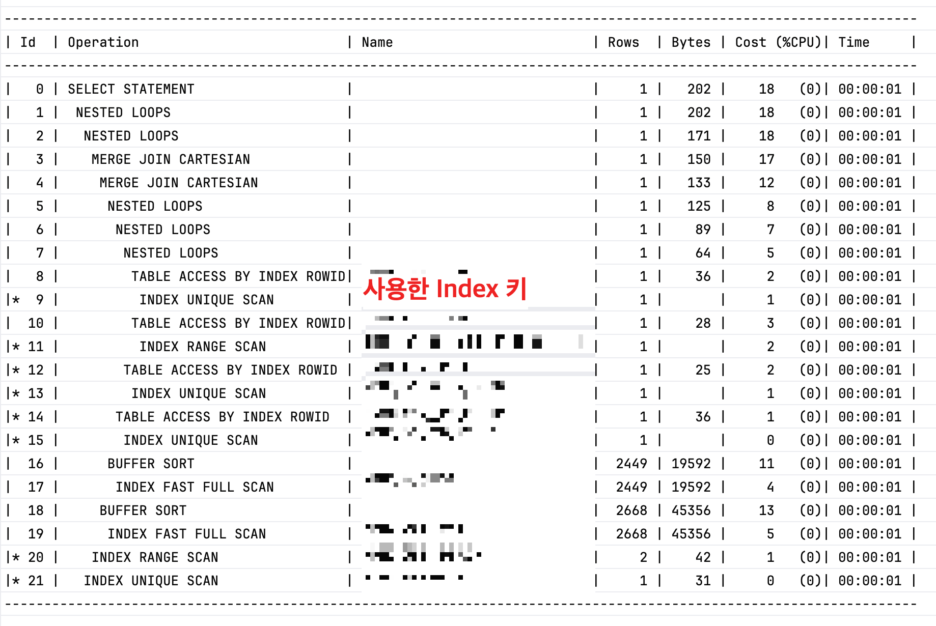 모자이크 된 부분은 사용한 인덱스 키가 나온다.
