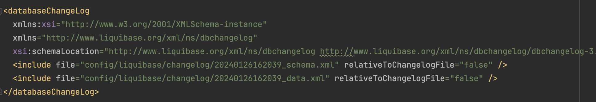 내 애플리케이션은 liquibase를 실행할 때 changelog로 schema.xml과 data.xml 2개를 포함한다.