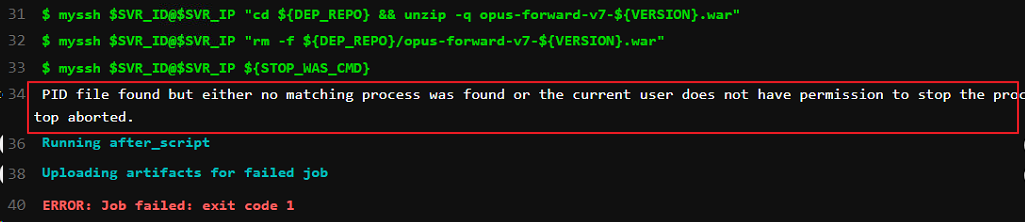 CI/CD에서 Tomcat 서버 Kill하는 중에 아래와 같은 에러가 나서 CI/CD가 Fail 됐다.
