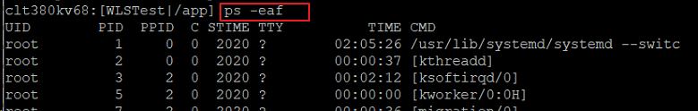 Linux에 들어가서 ps -eaf 명령어를 사용하여 pid를 확인했다.