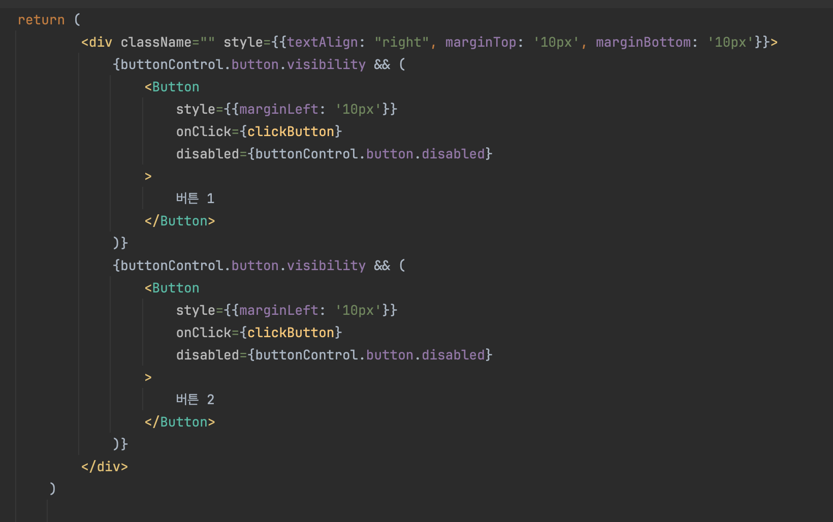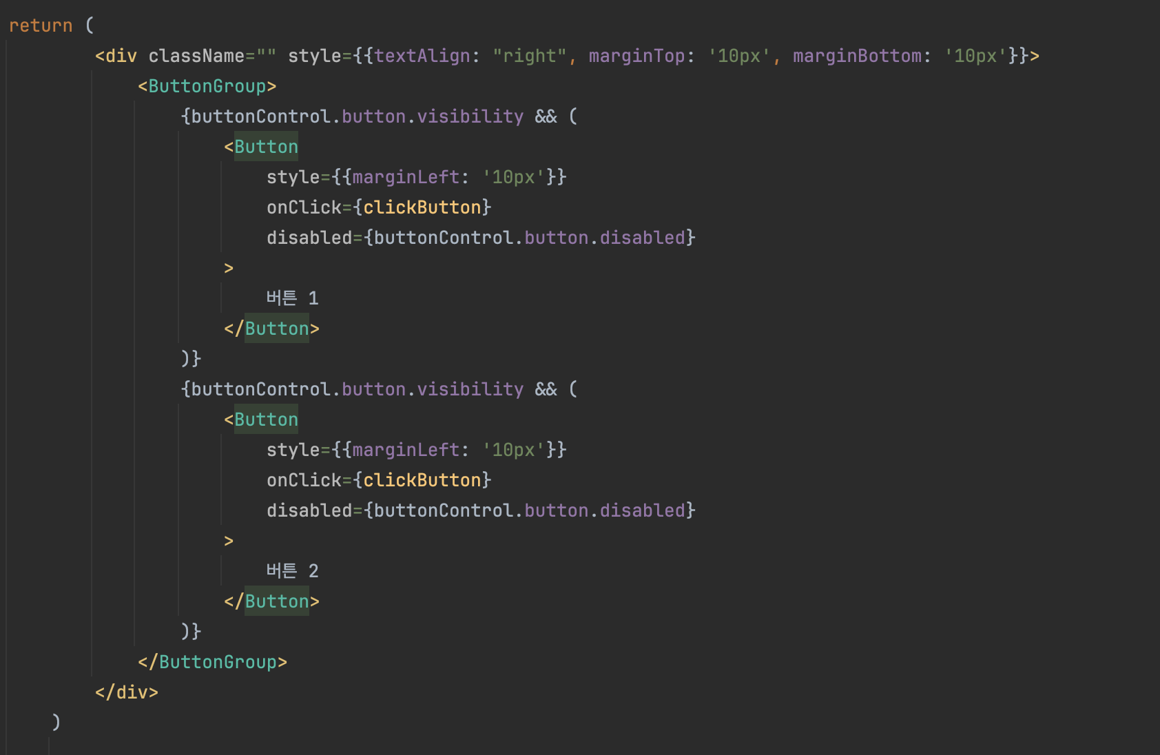 React에서 아래와 같이 ButtonGroup과 Button을 사용하고 있었다.