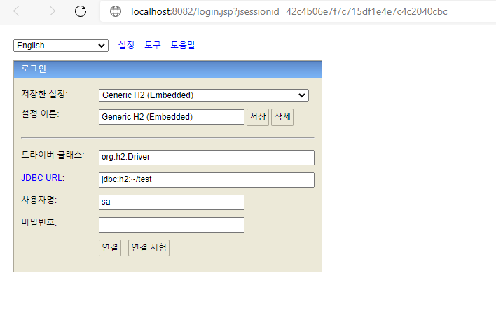 자동으로 웹 H2 콘솔이 뜬다. 처음에 비밀번호가 없으므로 그냥 연결 누르면 된다.