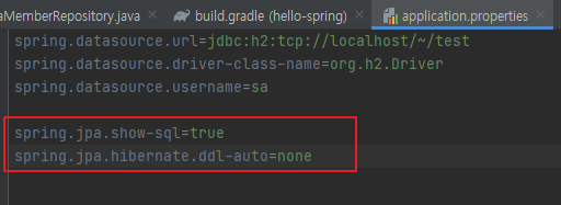 - show-sql: JAP가 생성하는 SQL을 출력한다.