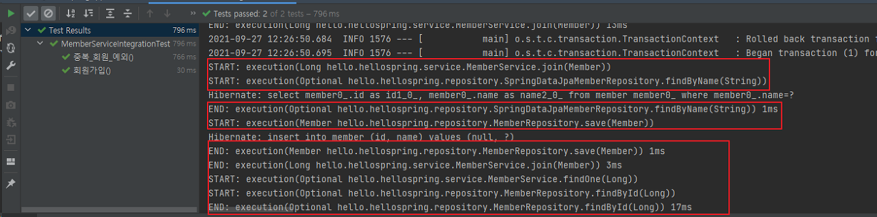 MemberSerivce의 메소드마다 회원 조회 시간 측정 추가