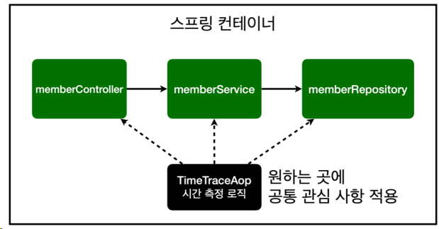 - 시간을 측정하는 로직을 AOP로 별도의 공통 로직으로 만들었다.