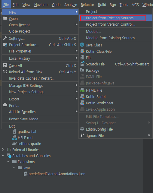 다운받은 zip파일을 압축 해제하고, IntelliJ에 Proejct로 Import 한다.