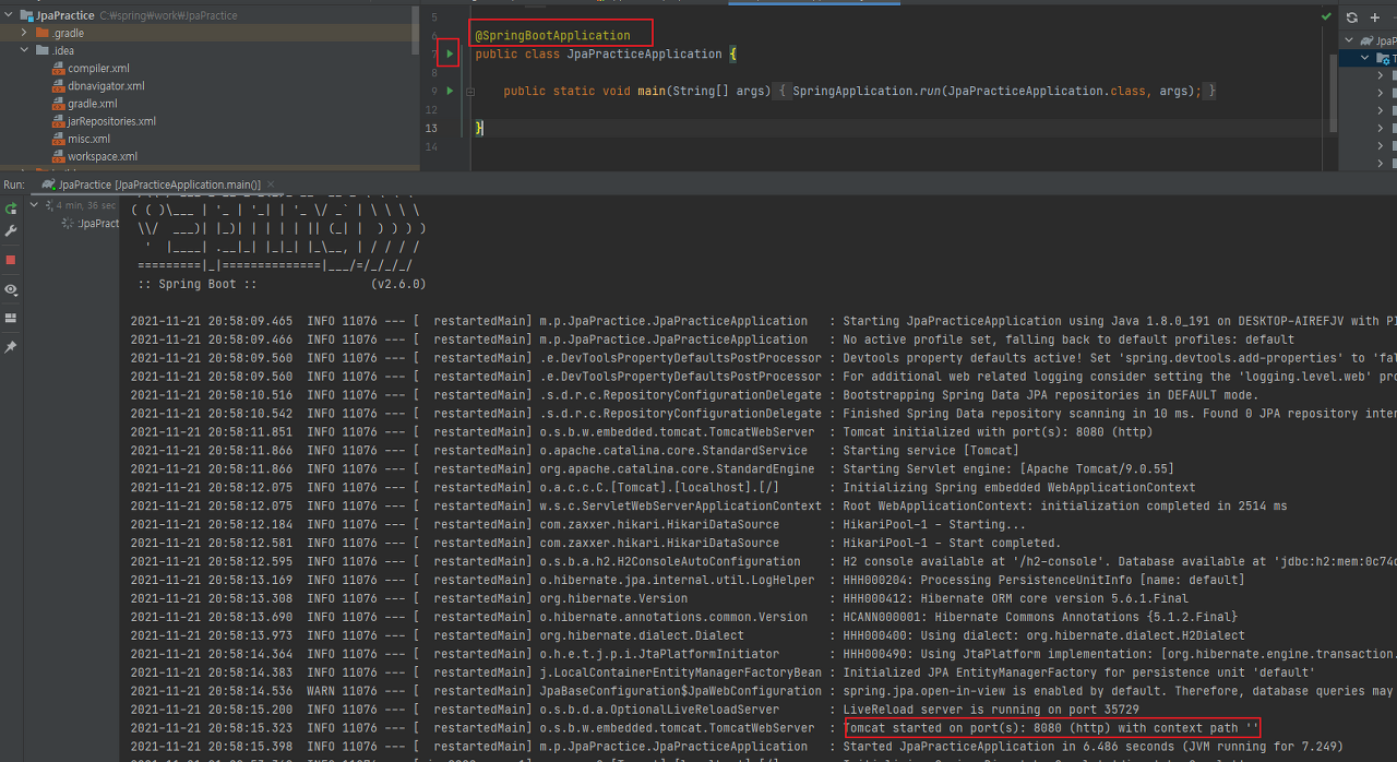 - 인메모리 관계형 데이터 베이스인 H2 Database 사용
