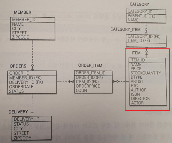 DB를 확인해보면 아래와 같이 하나의 테이블에 DTYPE으로 Item Type이 구분되어 들어간 것을 확인할 수 있다.