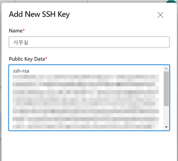 4. 아래와 같이 복사한 퍼블릭 키를 등록한다.