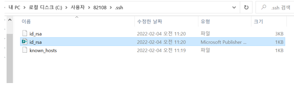 2. .ssh 파일 경로로 들어가서 id_rsa를 편집기로 연다.